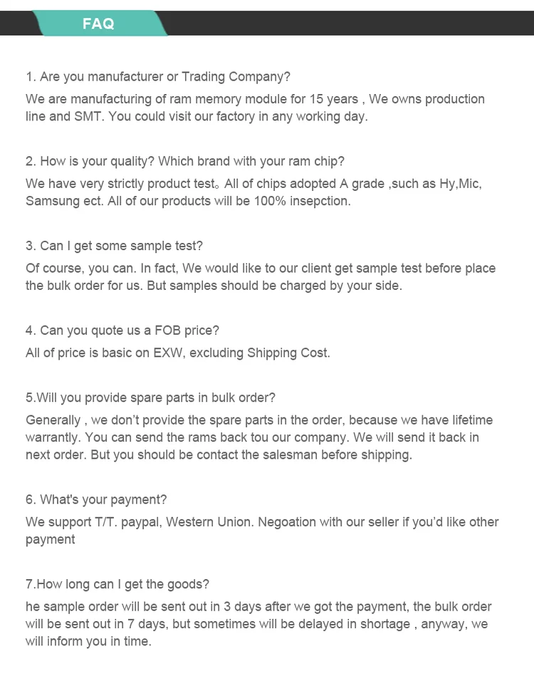 We choose high quality chips. First, the chip is tested. After the memory module is made, it will be installed on the computer