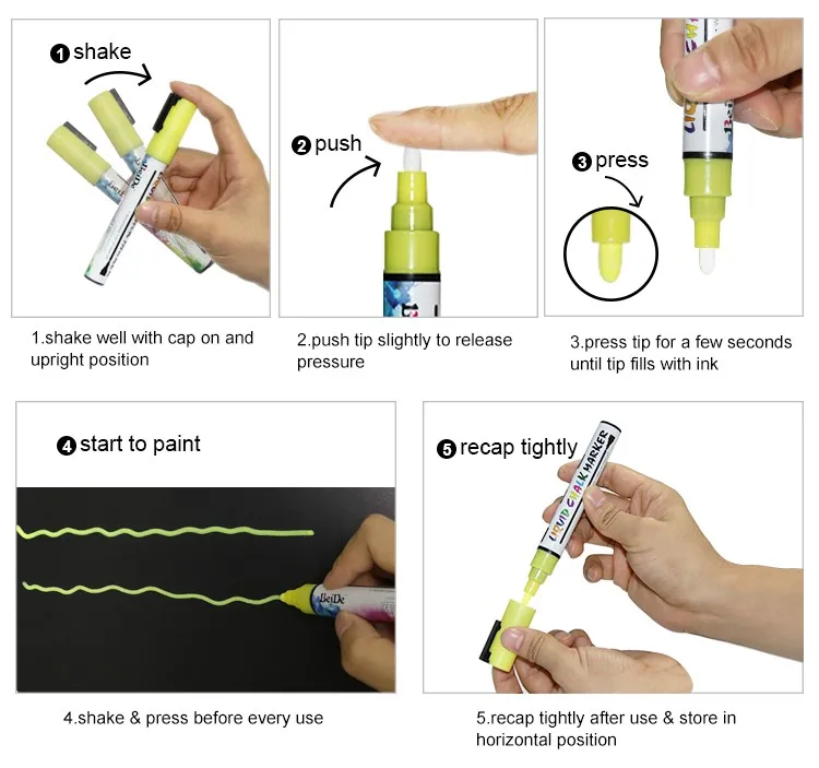 4.Our Chalk Markers is completely dust free which makes cleanup a breeze! Simply wipe with a damp cloth and watch as it disappears without the regular smudge and mess!
