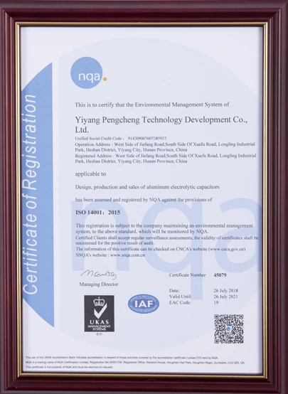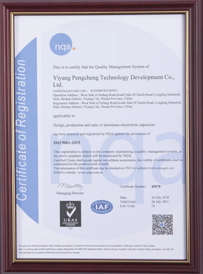 Yiyang Pengcheng Technology Development Co., Ltd, is a modern high-tech enterprise that integrates the development, manufacture and marketing of Aluminium electrolytic capacitors. With an area of 30000 square meters and more than 300 staff members, the company currently meets an annual productivity of 1 billion items. We have reached an anual sales of over 200 million RMB.
