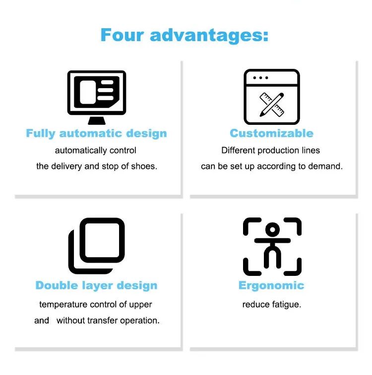 Product name | PLC Control Energy Saving Two Cold Two Hot Shoe Toe Cap Setting Shaping Machine Shoe Making Production Line Equipment |