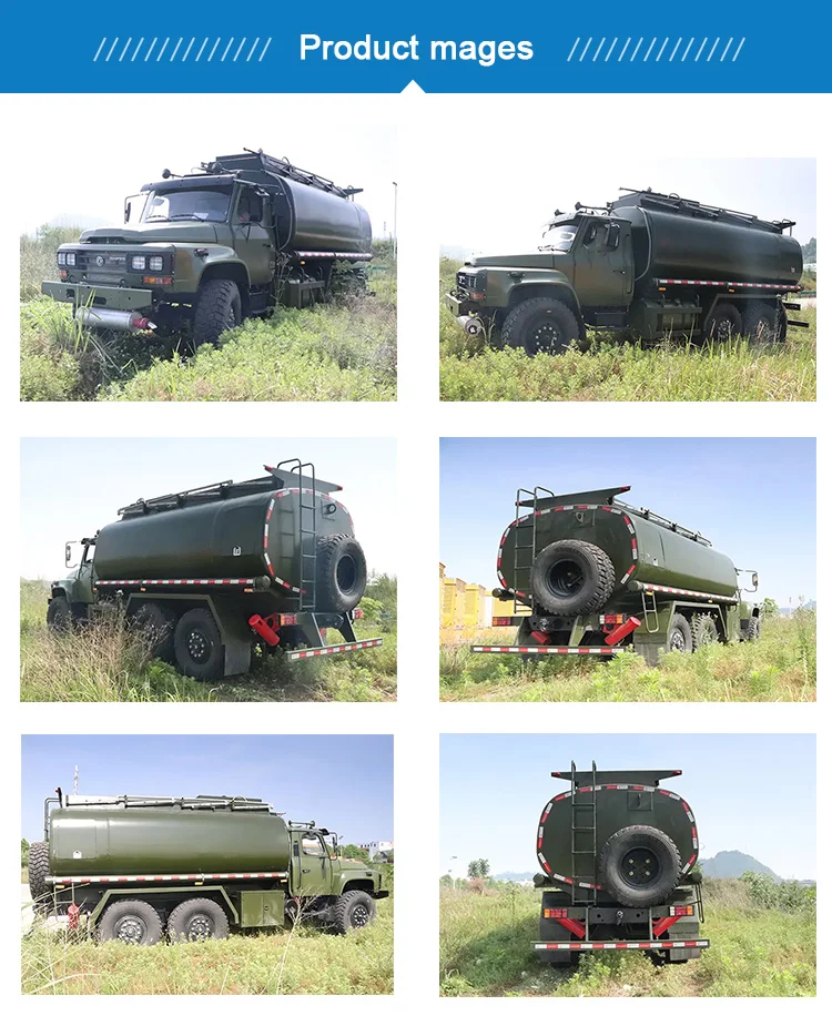 Dongfeng 6wd 6x6 fuel tanker truck are used for example to transport gasoline, diesel and liquefied petroleum or natural gas to filling stations. They also transport a wide variety of liquid goods such as liquid sugar, molasses, milk, wine, juices, water and industrial chemicals and a variety acidic, toxic or corrosive liquid products