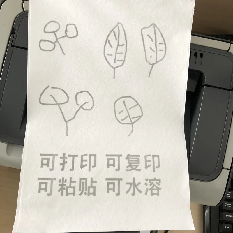 Product name | Factory sale Biodegradable custom A4 size Stick on Printable 100% PVA cold Water soluble Nonwoven Paper Embroidery Stabilizer | ||||||