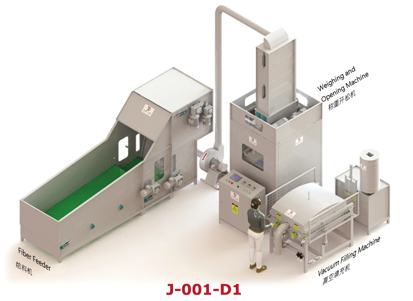 Model | J-001-C Automatic pillow making machine for vacuum filling pillows home textile product machinery production line for all fiber types | |