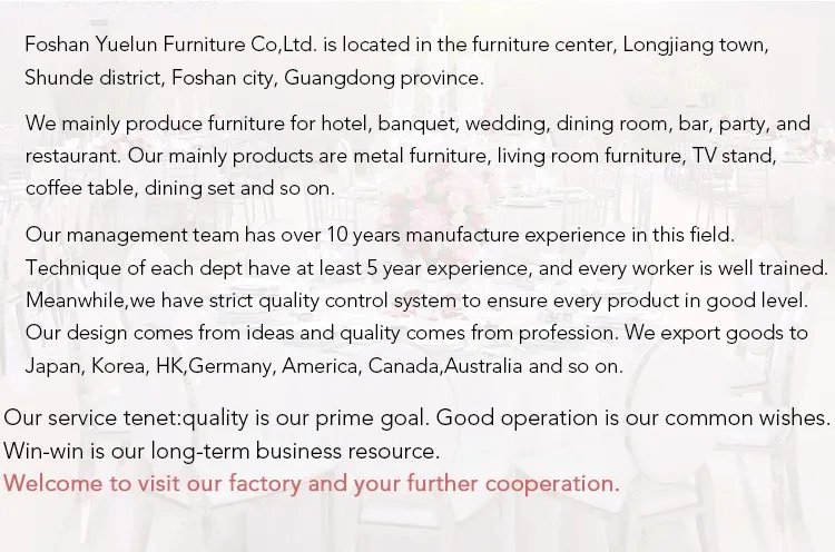 A: Our main product is stainless steel dining table,stainless steel dining chair,bar back,bar table,bar stool,