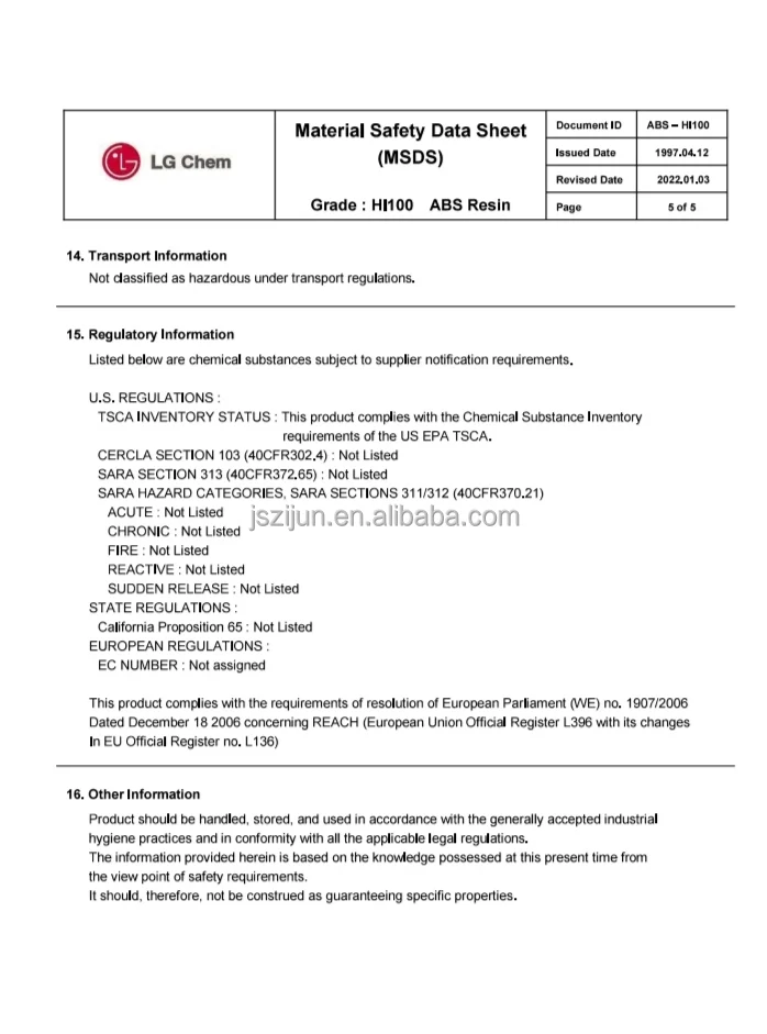 Jiangsu Zijun International Trade Co., Ltd. is a professional operation of plastic chemical raw materials company, the company perennial sales of GPPS, HIBS, ABS and other plastic raw materials, agent of domestic large chemical brands.Our company is people-oriented, integrity win-win, benefit sharing, cast brilliant core values, shaping character, creating fine products, capital along the bigger and stronger, innovation, excellence, to provide customers with excellent value, sail out to sea, sail to a more magnificent future.