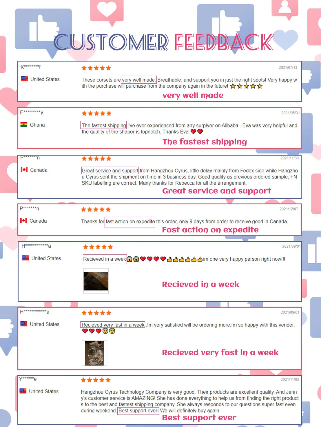 Service | 1. 100% Quality satisfaction guaranteed. 2. All colors, sizes, designs can be customized per your requirements or samples. 3. Provide free OEM packaging design and free box packaging for your promotion. 4. You can get answer within 24 hours | ||||||