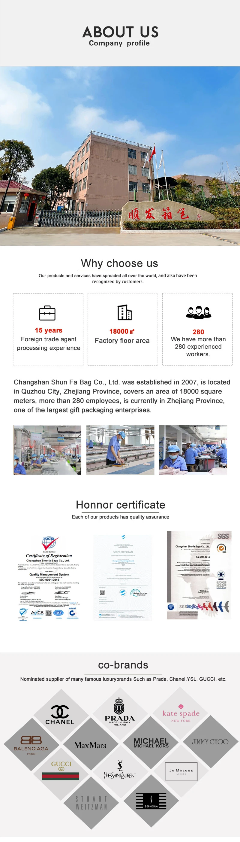 SA8000, GRS, ISO9001, Reach, Prop 65, AZO free