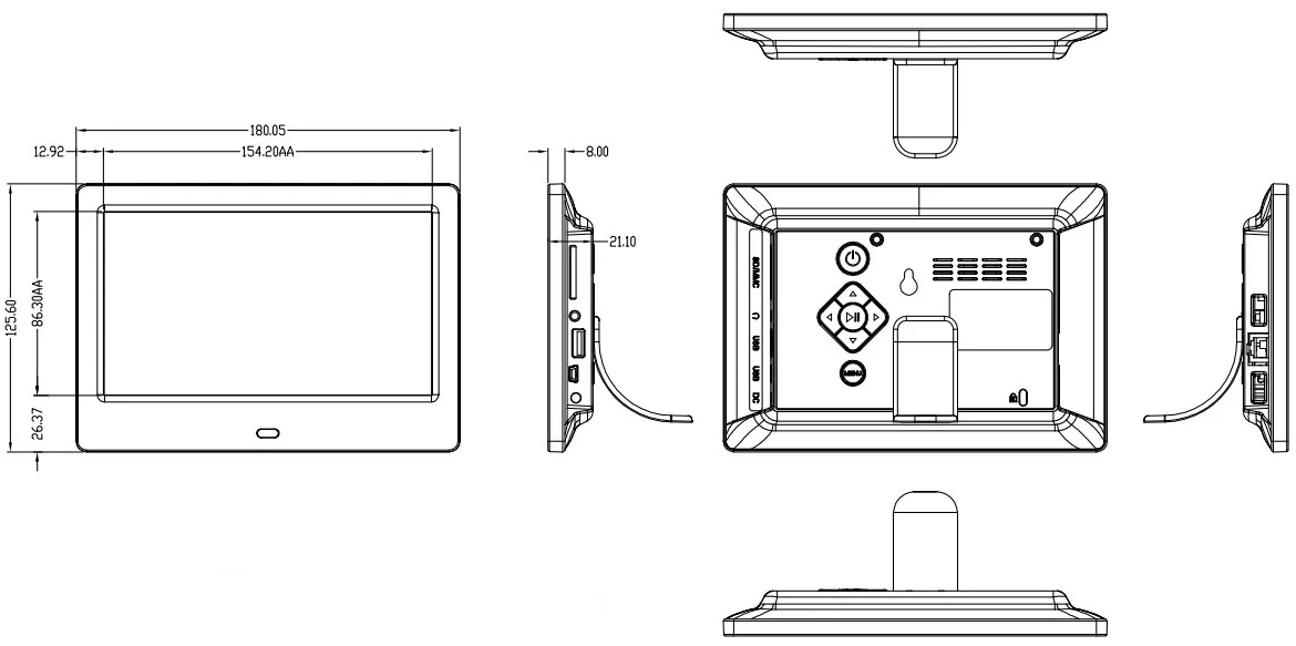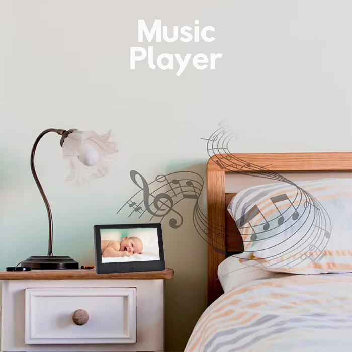 Multi-function | Photo/Video/Music/Alarm/Calendar | Photo/Video/Music/Alarm/Calendar | Photo/Video/Music/Alarm/Calendar | Frameo APP/Photo/Video |