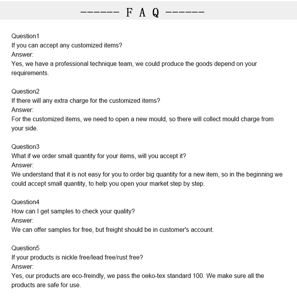 Sample: | Free charge for regular size and color/ Free in stock. | ||||||