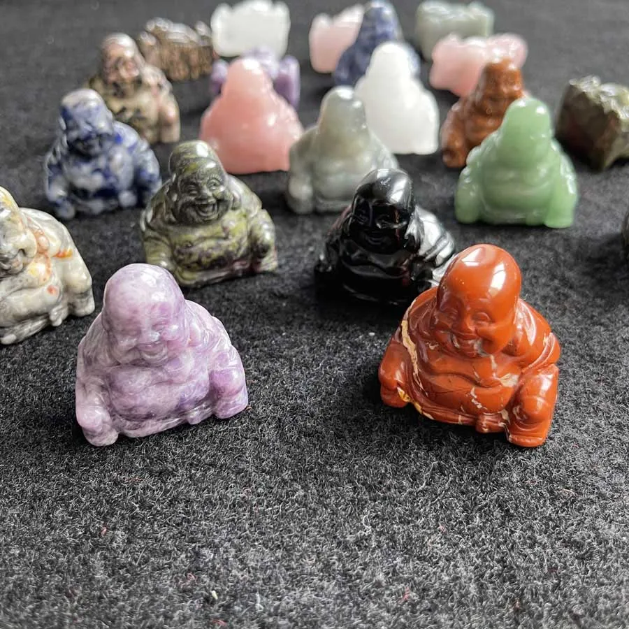 Оптовая продажа различных нефритовых камней счастливый смех Будда статуи маленькие целебные камни