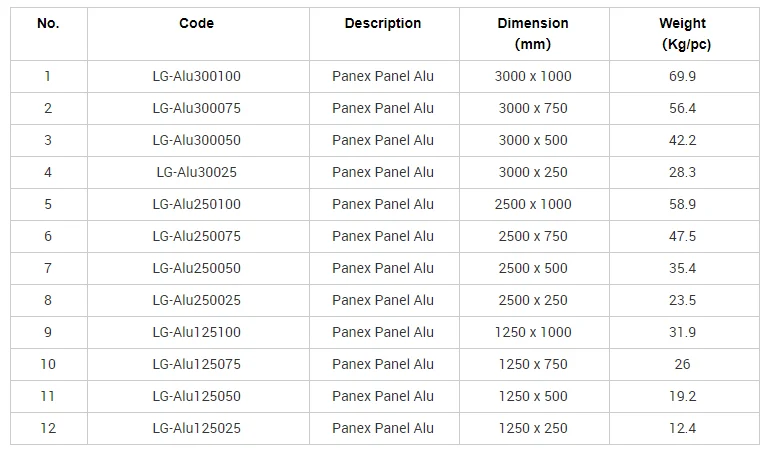 The high strength and lightweight panels comes in heights of 3000,2500 & 1250mm with 4 standard widths of 1000,750,500 & 250mm.With a total of 12 standard sizes to choose from, you stand to benefit from a high utilization rate with lesser inventory parts.