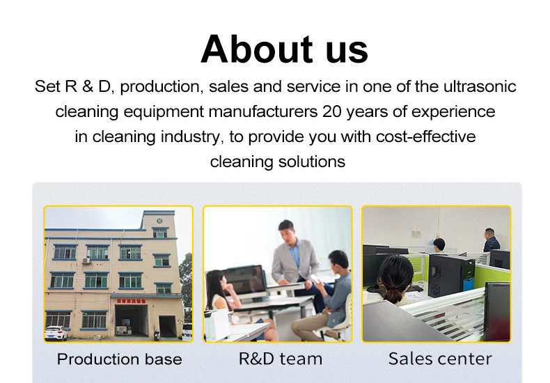 Model | Capacity | Tank size(mm) L*W*H | Ultrasonic Power | Ultrasonic frequency | Time control | Ultrasonic generator |