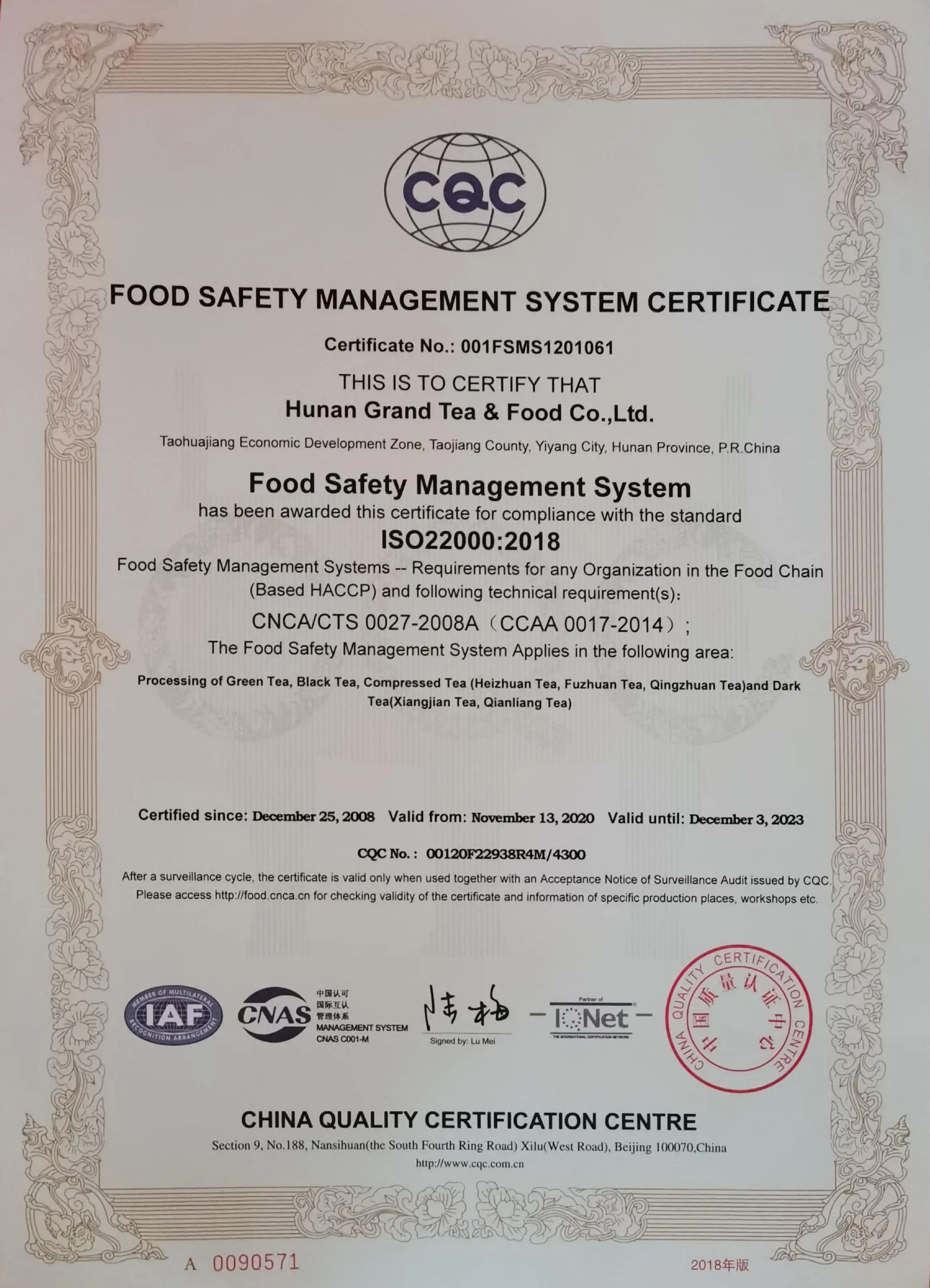 Hunan Qinyuan Spring Tea Co., Ltd. is located in Changsha, Hunan. We devote to export of organic and EU standards Chinese famous teas ,mainly including black tea, Pu'er, Oolong and green tea. Qinyuan Spring Tea owns professional residue testing laboratory with HPLC machine and R&D team, including 5 people with master's degree or above, and 3 senior tea taster. Certified in USDA NOP and EU organic tea , relying on tea gardens in Fujian, Yunnan, Anhui, Zhejiang province and strong ability of supply chain, no agents profits from manufacturer to exporting , with fast delivery, high quality and competitive price, business scope from loose tea to tea bags. We provide OEM production for many overseas tea brands, export to 30 countries with excellent reputation and highly praised. Our annual export turnover more than 2 million US dollars every year. Qinyuan Spring Tea put great attention to the safe production and supply . We committed to building a entire industry chain from tea gardens to consumers’ hands, bring good Chinese tea to every corner of world .