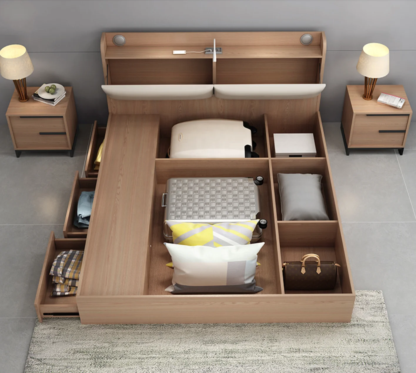 GCON деревянная кровать с выдвижным ящиком, дизайнерская мебель, экономия пространства, Современная платформа, набор мебели для хранения US $108.00-$168.00