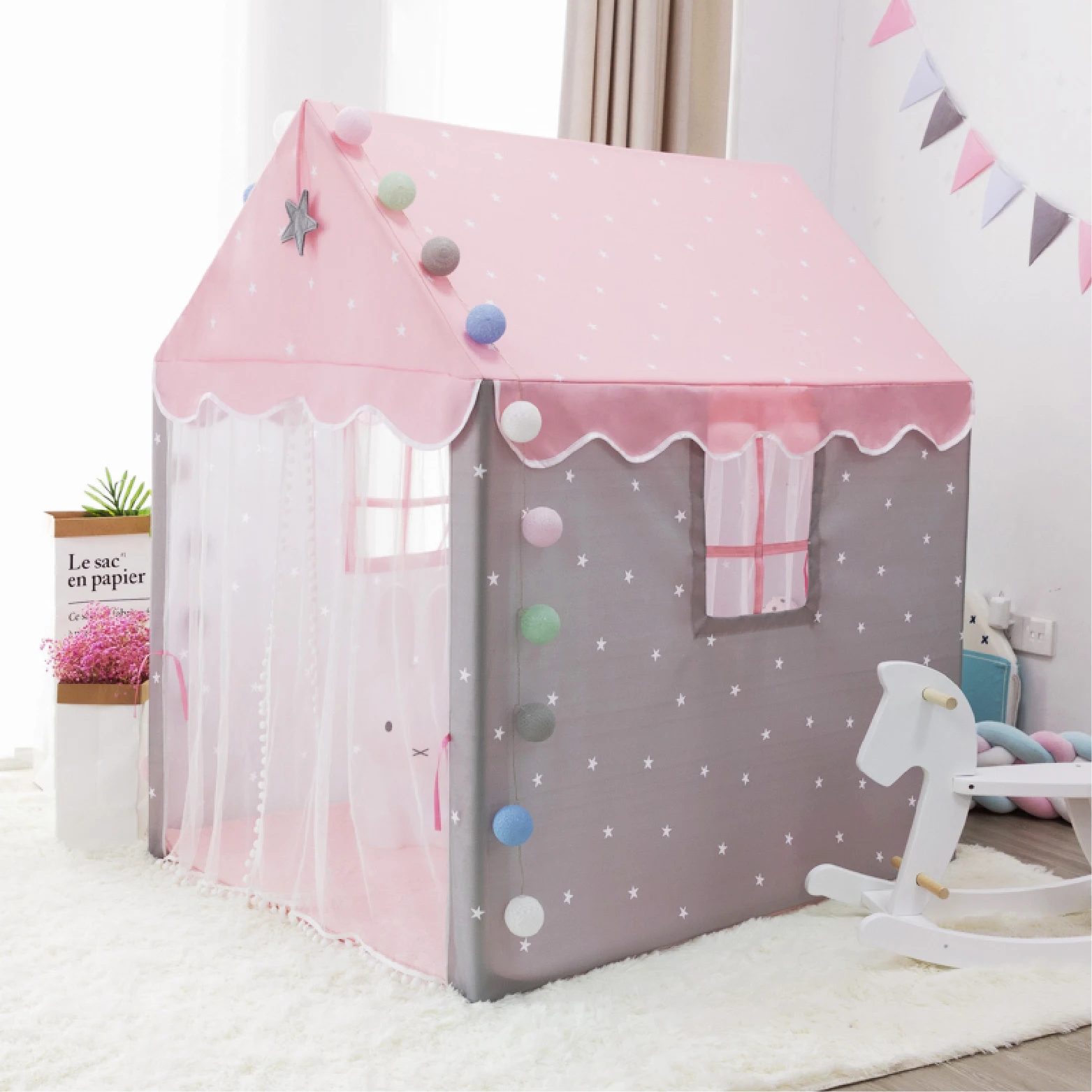 Большая розовая синяя детская игровая палатка для кемпинга и игрового домика