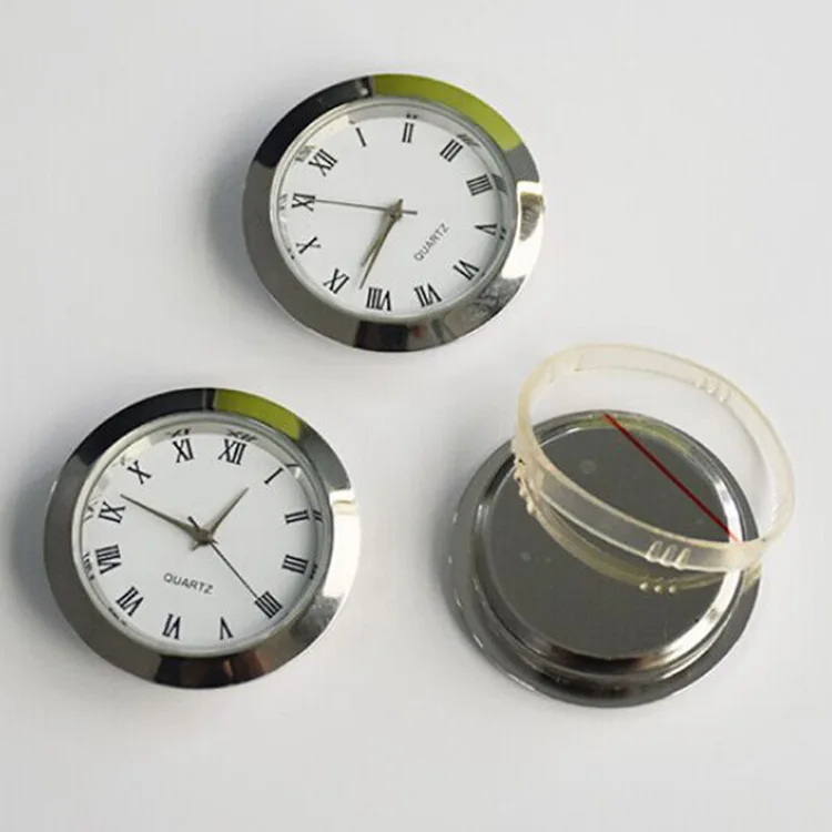 Clock insert size: mini round quartz clock insert overall diameter about 1-7/ 16 inch (36 mm) We also have other regular size like 38mm, 42mm 45mm 55mm, welcome to consult. |