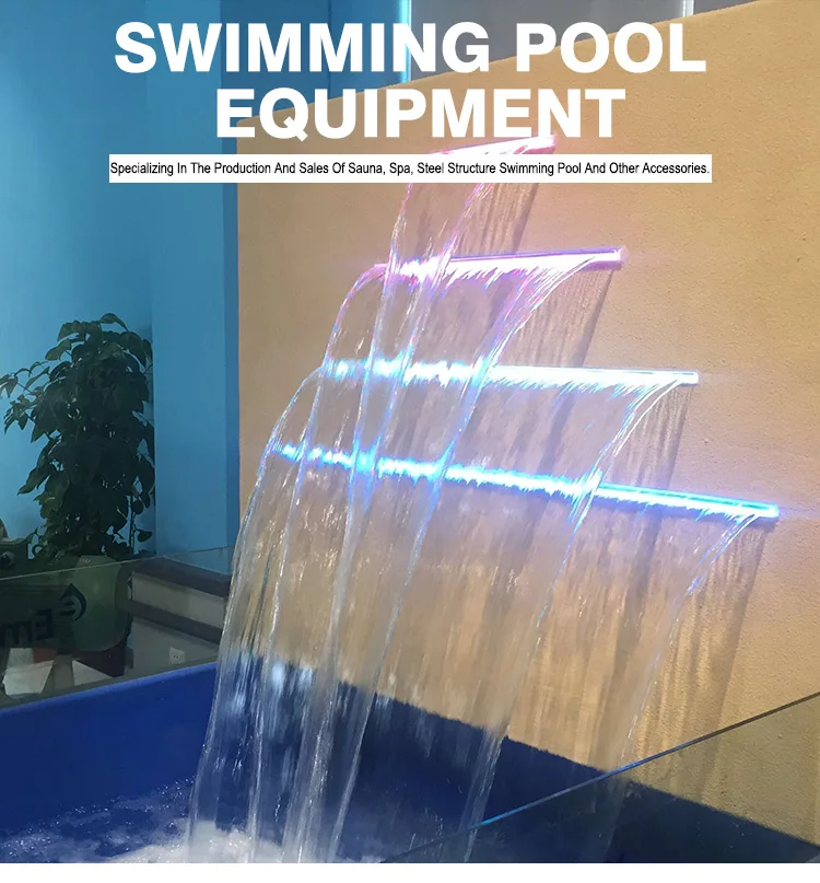 RGB Light Rectangular pool water waterfall Stainless Steel Swimming Pool Cascade Water Blade Led Acrylic Waterfall