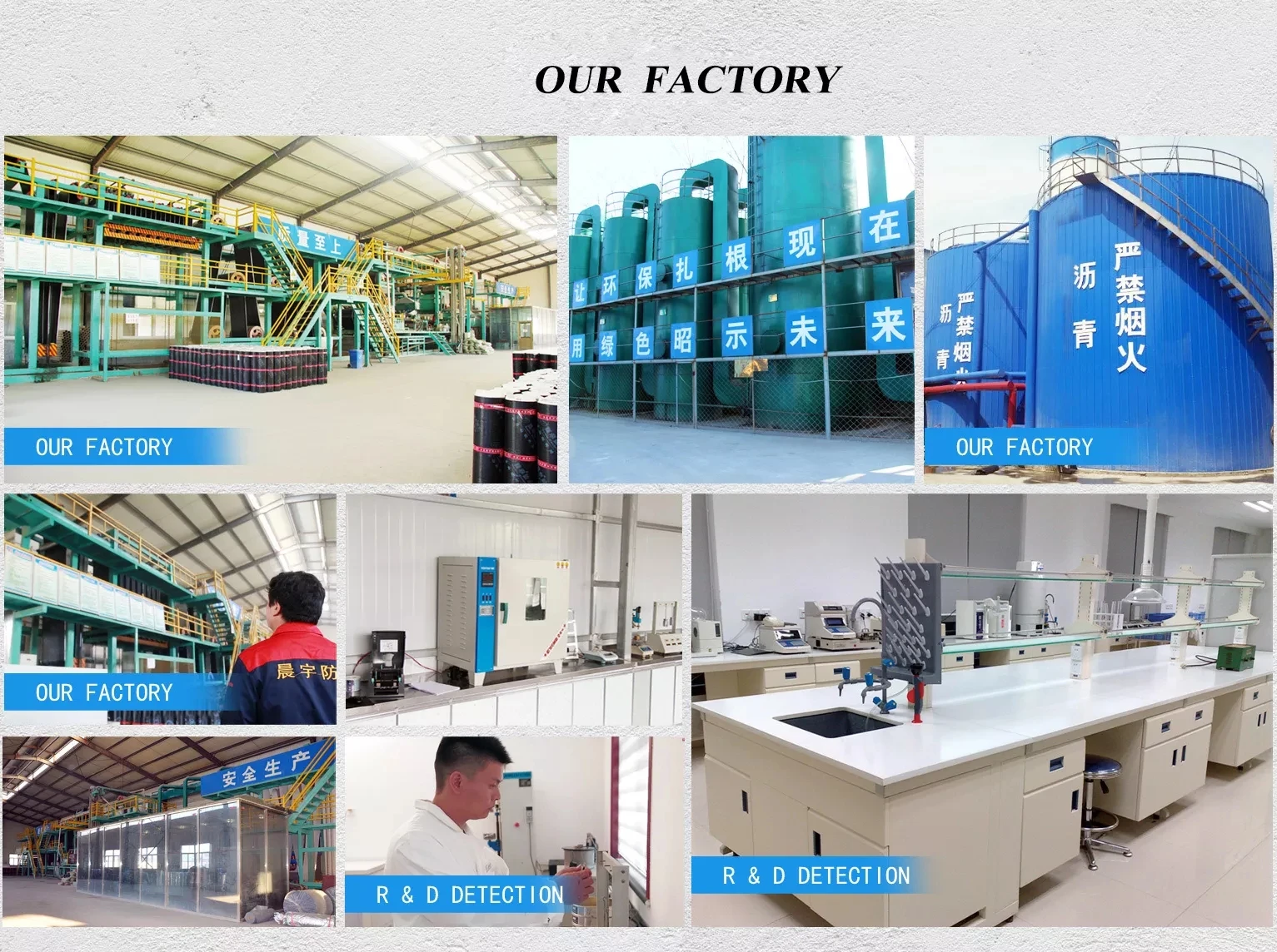 We are engaged in producing and exporting the following products with complete specifications and good quality : Various Waterproof Materials in 1.polyurethane waterproof coating;2.high polymer waterproof membrane;3.self-adhesive waterproof membrane, 4.SBS modified waterproof membrane ,5.JS polymer cement-based waterproof coating and so on .