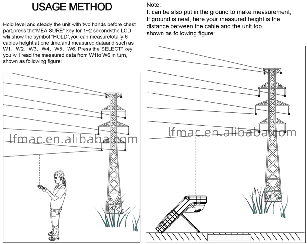 Top mode: measuring the height of the most higher 6 cables | V |