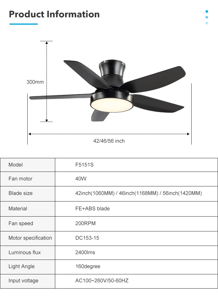 Fan Leafs Size | 42/46/56 Inch |