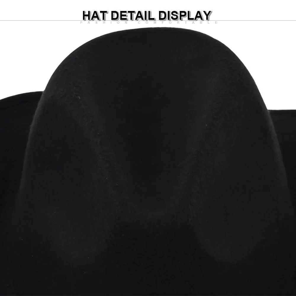 HT-0314 высокого качества с широкими полями элегантные ковбойская шляпа в западном стиле веревка унисекс черные плотная ковбойская шляпа US $0.58-$2.13