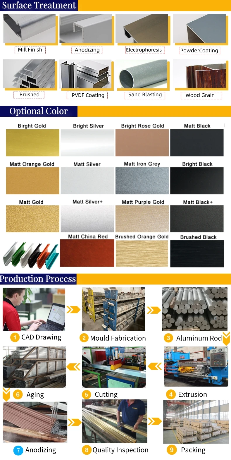 Surface treatment | powder coating | electrophoresis | wood grain | anodized | Brushed | Polishing | |||||||