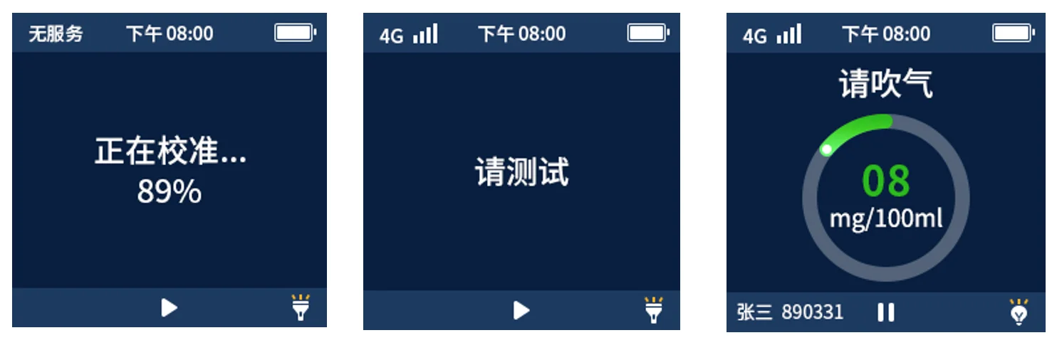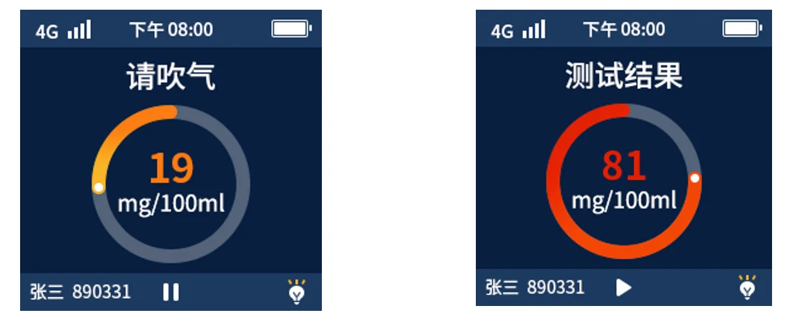 2 | Test completed | "Alcohol detected, please cooperate with further testing" or "No alcohol, thank you for your cooperation" | ||||