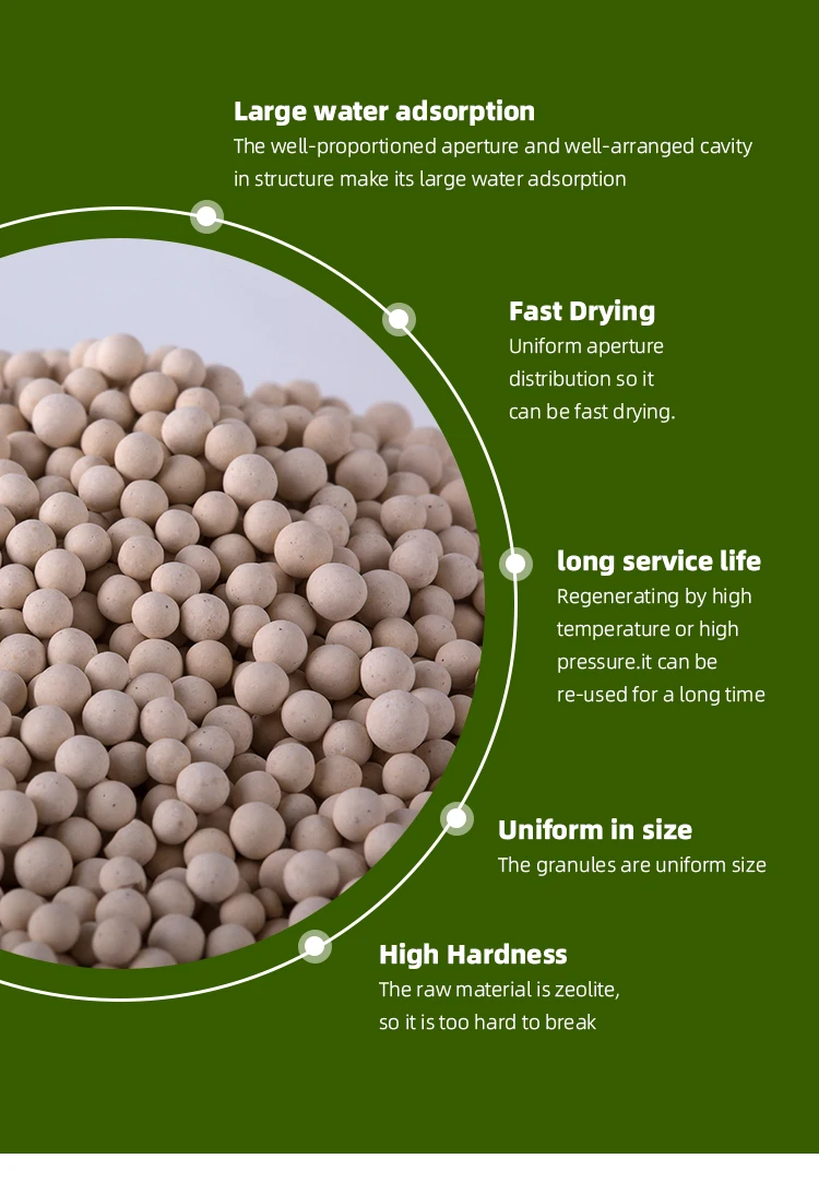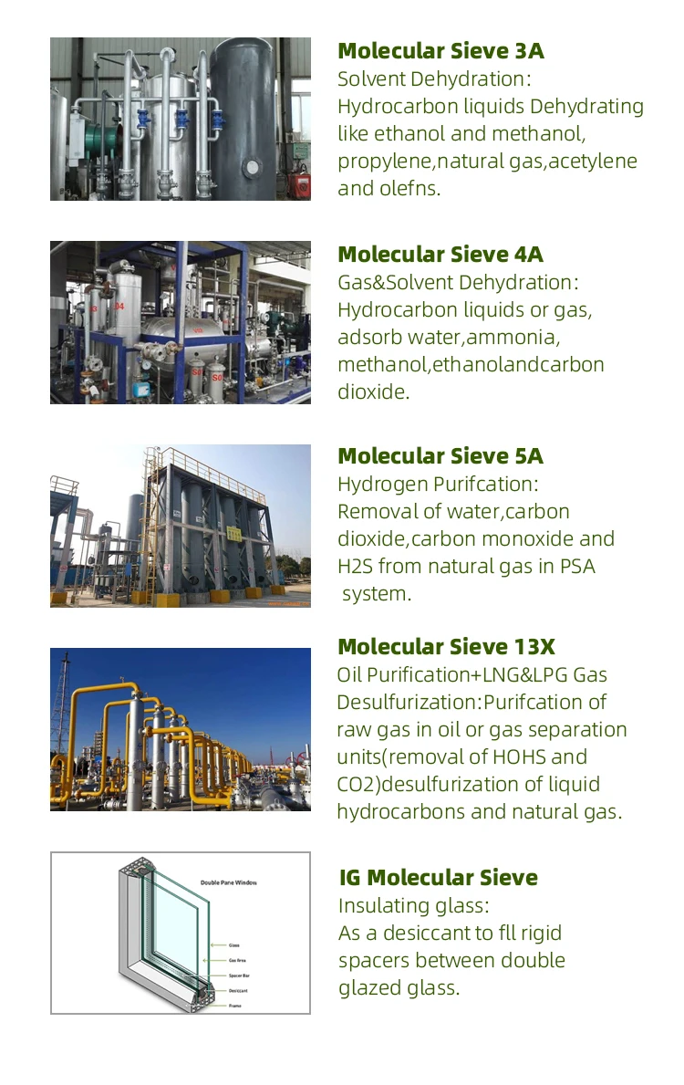 Molecular sieve adsorbents are crystalline aluminosilicates, known as zeolites. Their unique structure allows the water of crystallization to be removed, leaving a porous crystalline structure. These pores, or cages, have a high affinity to re-adsorb water or other polar molecules. Aided by strong ionic forces (electrostatic fields) due to the presence of cations such as sodium, calcium and potassium, and by the enormous internal surface area of up to 1,000 m2/g, molecular sieves will adsorb a considerable amount of water or other fluids. If the fluid to be adsorbed is a polar compound, it can be adsorbed with high loading, even at very low concentrations of the fluid. Molecular sieves will, therefore, remove gas or liquid impurities to very low levels (ppm or less). Another feature of molecular sieve adsorbents is their ability to separate gases or liquids by molecular size or polarity. The pore, or cage, openings are the same size as many molecules, e.g., in the case of hydrocarbon paraffins, straight-chained molecules can fit into the pores and be adsorbed, while the branched-chain molecules cannot enter the pores and pass through the molecular sieve bed unadsorbed.
