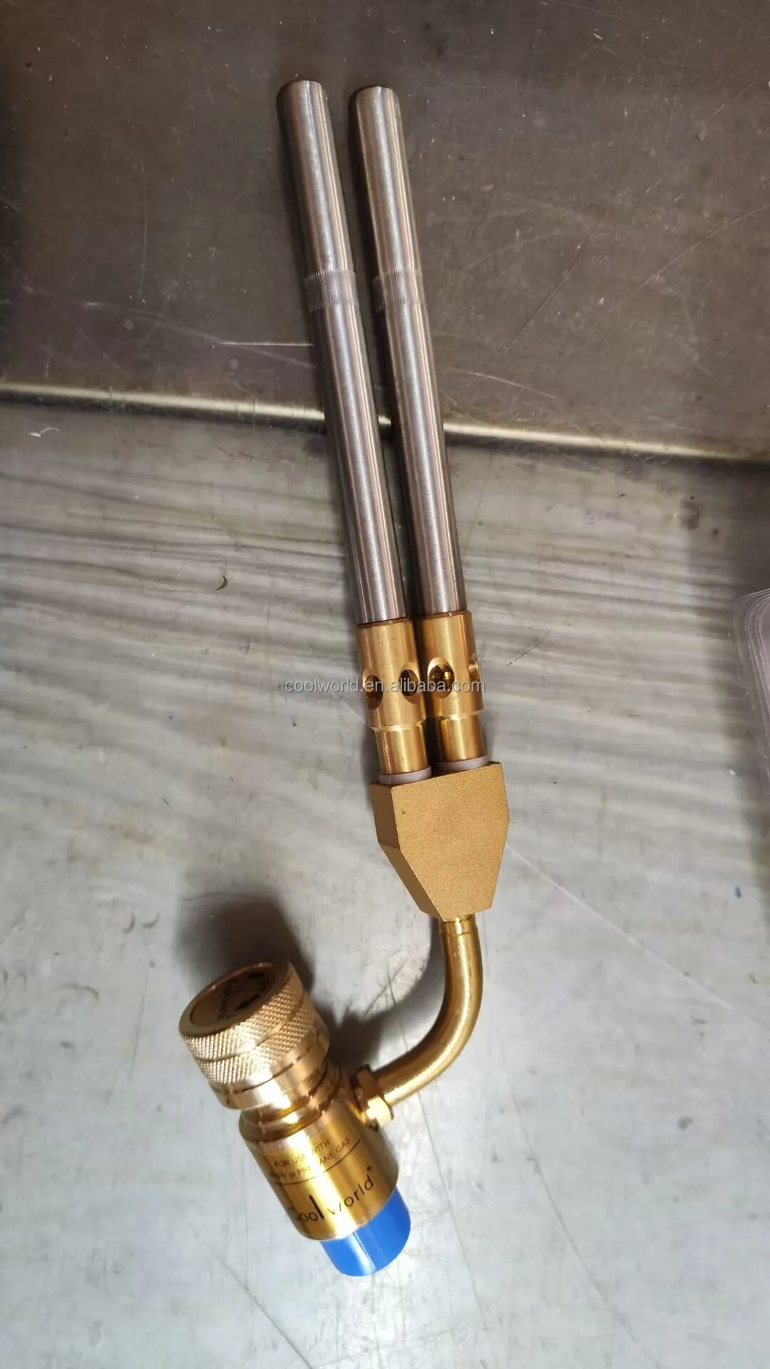 Features | Tip spins 360° for various jobs dual tips generate more heat High flame temperature up to 3600°F Shorter weiding time and less gas consumption The main parts are made of Brass,and no aluminum is used For use with MAPP or Propane gases |
