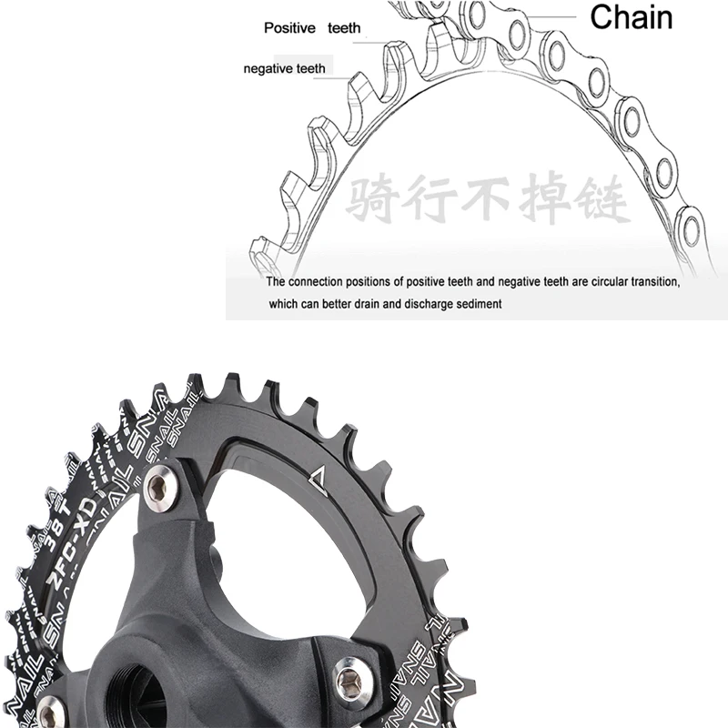 Snail chain ring made from CNC aluminum 7075, aerospace level offer you stiffness and lightweight experience. . Model: Snail round BCD 104 chain ring, 4-arm Tooth: Narrow and wide tooth Fit for: Most Shiman.o Material: AL 7075-T651 Alloy, aerospace grade Process: High precision CNC Surface treatment: Anodize Tooth:30T 32T 34T 36T 38T 40T 42T 44 46 48 50 52 tooth BCD: 104 mm Color: Black Red Thickness: 4mm Weight: 30T 38g,32T 38g,34T 48g,36T 52g 38T 70g,40T 75g,42T 92g