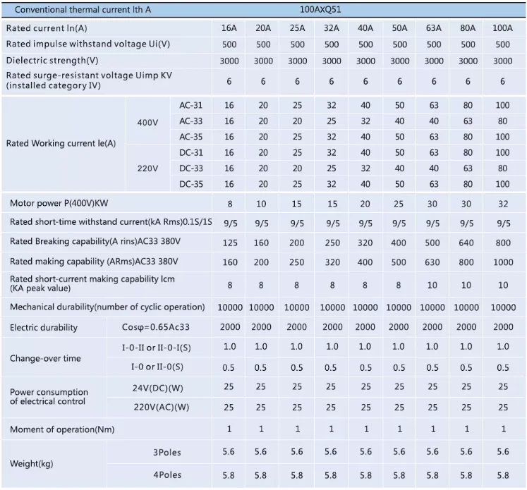 Operating transfer time (no time delay) | ≤3s |