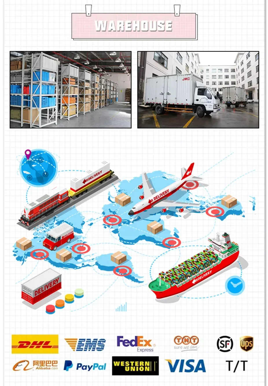 Accepted payment types: T/T, L/C, MoneyGram, PayPal, Western Union, Cash;