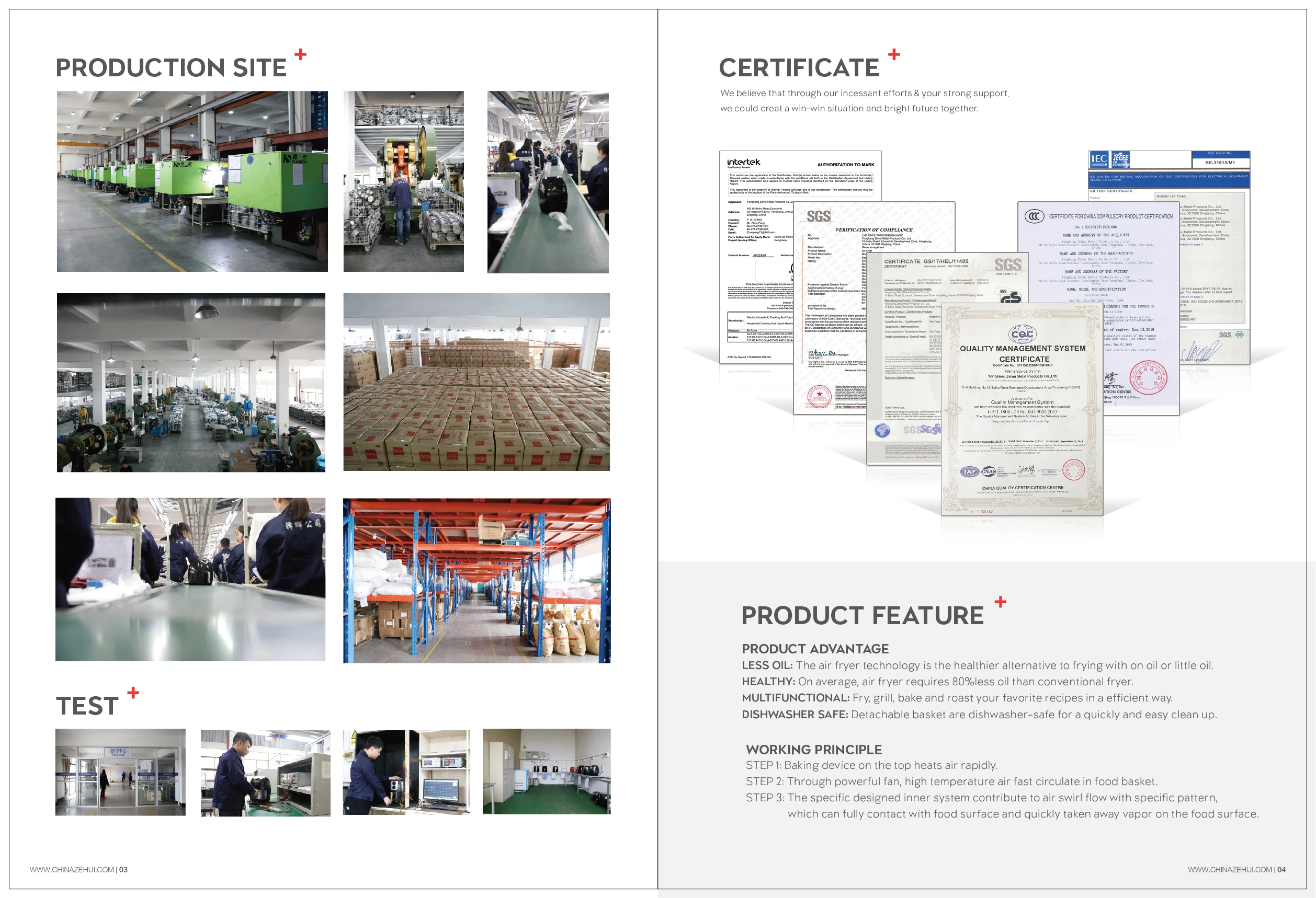 1. Why YONGKANG ZEHUI METAL PRODUCTS CO., LTD? ZEHUI is an established supplier. We export to almost every country around the globe and when it comes to quality and efficiency our products can meet the standards of the most demanding countries. We are certified by EMC、LVD、CB、CE、GS、ROHS、REACH、LFGB、PAHS、ERP、ETL、ISO9001, among others.
