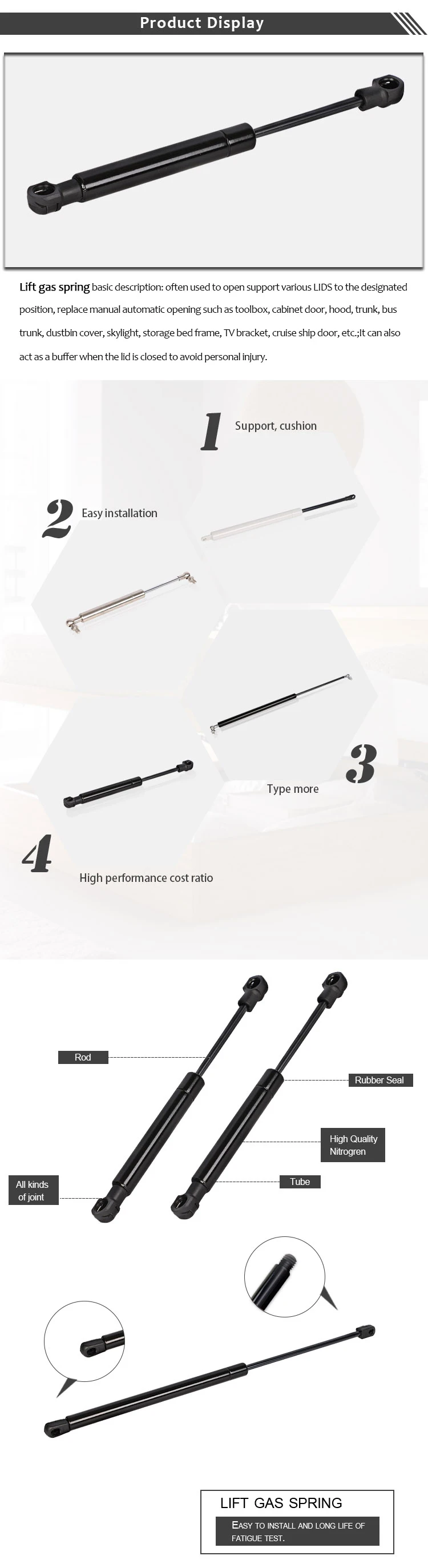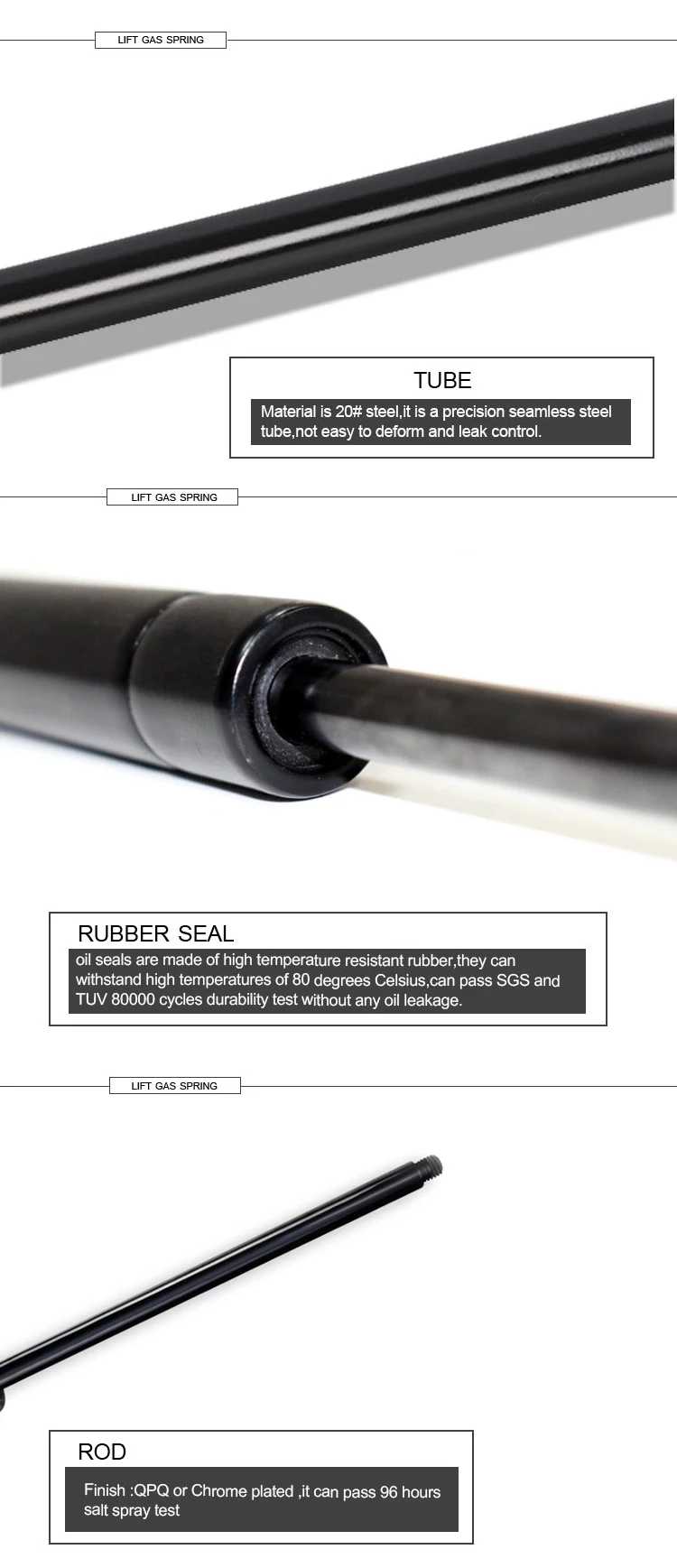 Model | Extended length | Stroke | Cylinder dia | Piston rod dia | Min. extension force |