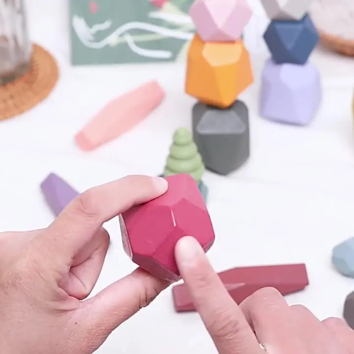 Разноцветные деревянные штабелируемые камни YH игрушки для малышей балансирующие блоки дошкольные Монтессори