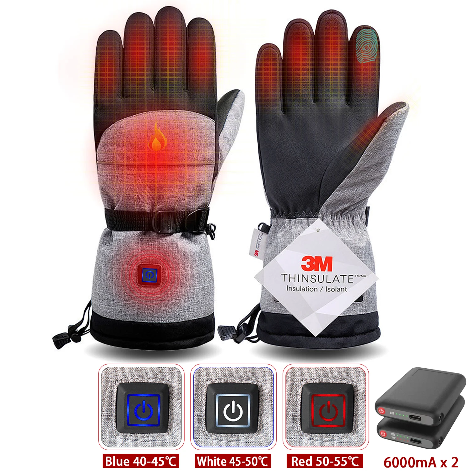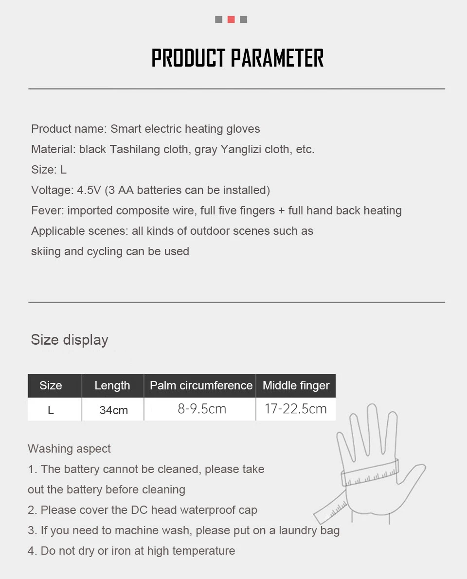 1 Pair Warm Electric Heated Hands Warmer Smart Gloves with 3 x AA x 2 Battery (Battery not including).