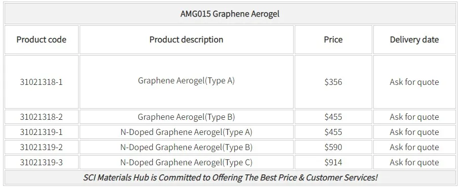What makes graphene aerogel so popular is how incredibly lightweight it is. Scientists in China have created a graphene aerogel that is seven times lighter than air with the ability to be balanced on a single blade of grass. With immense elasticity and absorption, graphene aerogel is considered one of the best materials when it comes to filtration. However, the range of applications for this material is still being explored. Barring more research, many scientists believe that graphene aerogel could be used to create super lightweight batteries that are still high in energy density. It also appears to be great for insulation purposes. The shelf life of this graphene aerogel is only one year, so be sure to use it promptly after purchasing.