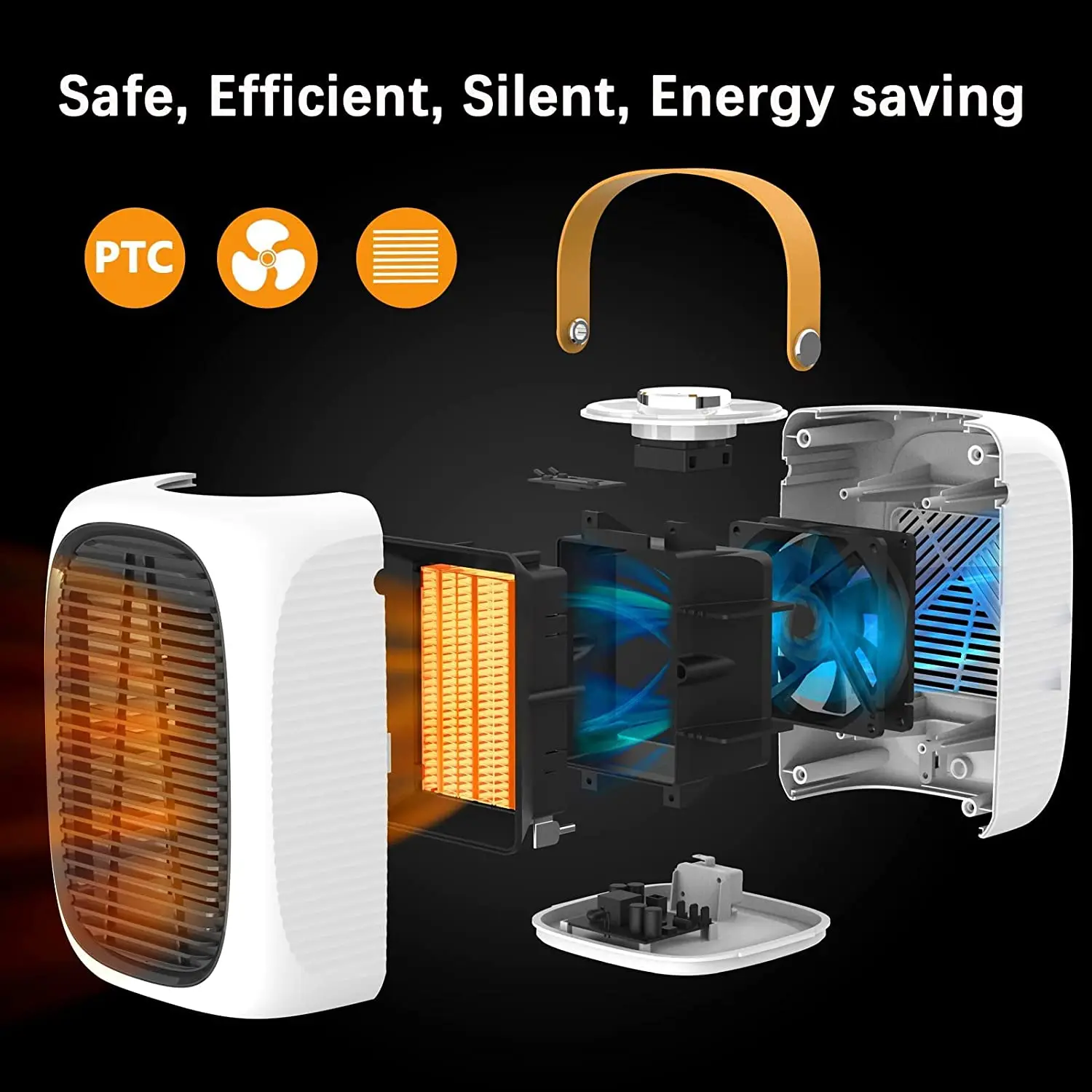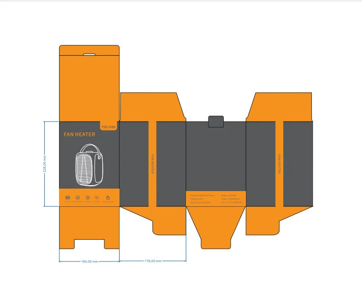 Feature | PTC Heating Ceramic,3S Fast Heating,Low Noise, 3 Heat Settings,Overheat Protection, Fireproof shell, Power failure protection, |