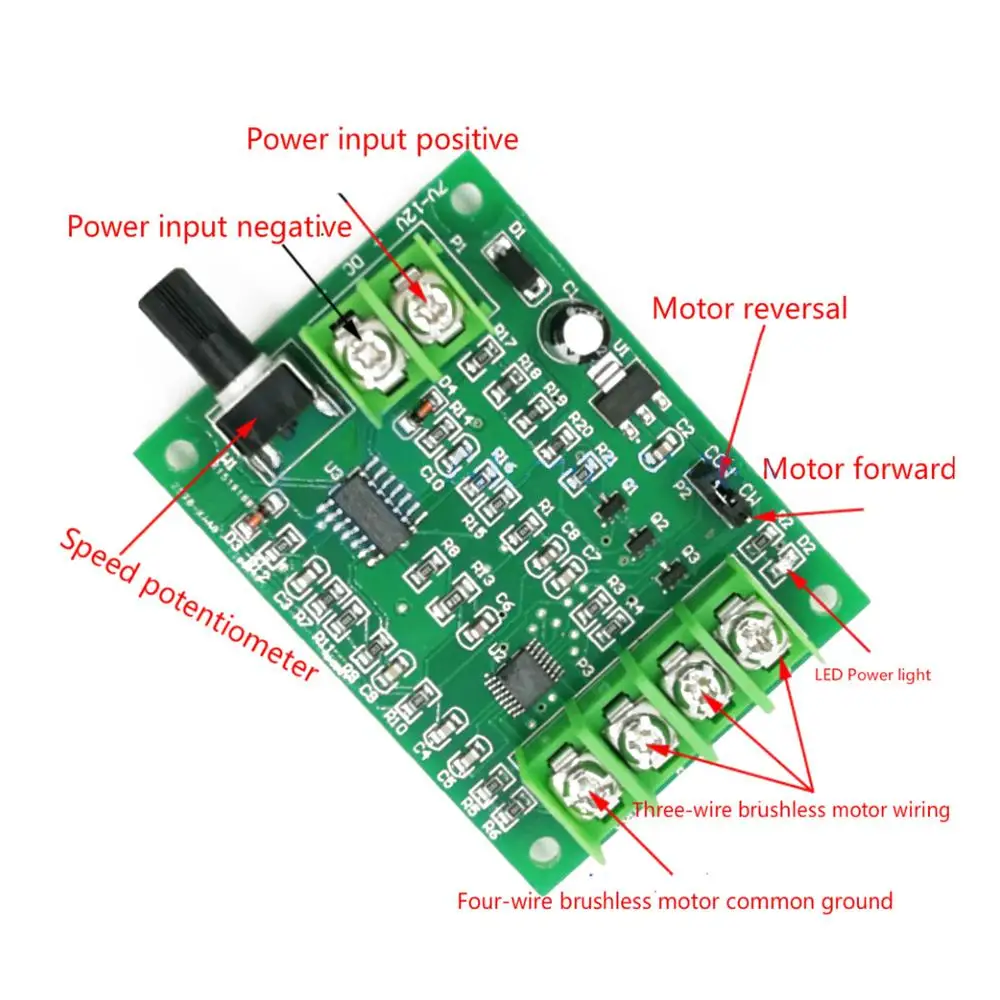 Note: After the short-circuit over-current protection of the brushless driver board is turned off, the power indicator will be off. At this time, the power supply of the driver board should be disconnected. After the cause of the over-current is processed, the driver board can be powered. The LED power indicator will work normally after it is lit.