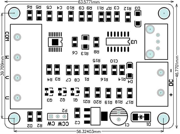 The driver board can drive a micro 3-wire or 4-wire Hallless brushless motor such as a hard disk brushless motor or an optical drive brushless motor.