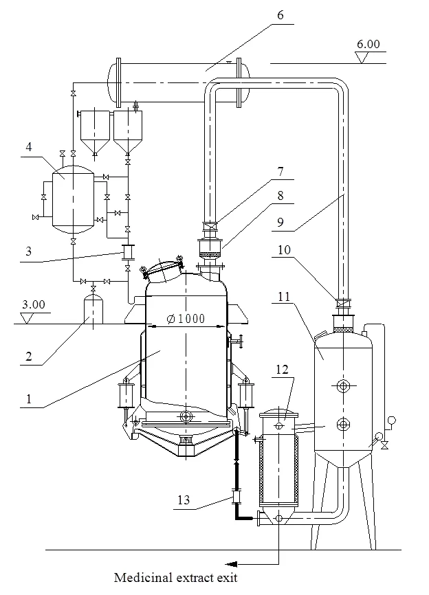 The all right equipment of aircrew simplifies, washed the convenient, the whole closed operation, has no environmental pollution, compared with necessary equipment of traditional craft, the equipment reduces by 1/3, the occupation of land reduces by 2/3, investment can save by 40%, energy consumption can be reduced by 40%, the attendant reduces by 1/3, so the production cost can be reduced by about 50%.Only need to join 8 times of solvents of crude drugs quantity once, utilize new solvent conduct of hot backset current to hot backset current to supplement, which the backset total is equal to the old extracting need 2-3 times join solvent total, it save the solvent 50%-60%, also it can increased the collecting volume of medicinal materials.