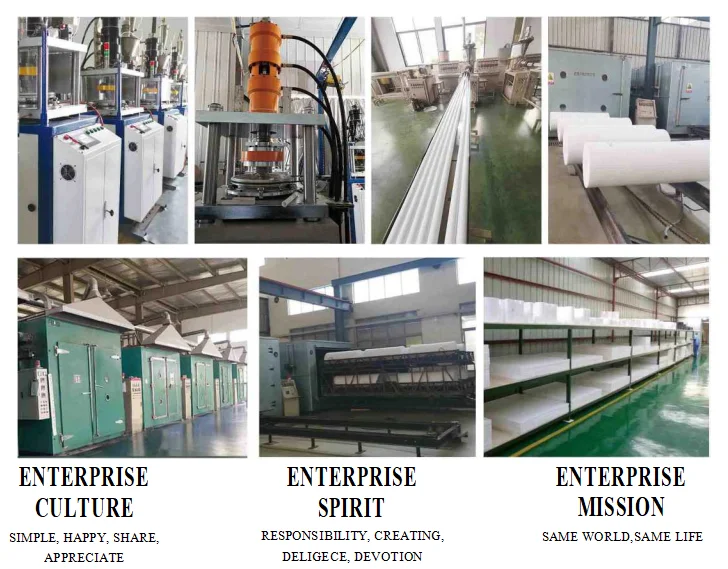as tubing, rods, sheets, film, cut plates,tape,packing ect . In addition, we have a range of plastics materials.Our products has high performance on Anti-corrosion,Low friction coefficient,High and low temperature risistant,Good insylation,Non-viscosity,Non-viscosity.It is widely used in Chemical, Mechanical,Avation, Military industry, Electronic applicance, Fuel sell and Environmental equipment ect.