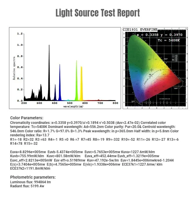 Spectrum | UVA / UVB / UVV | |