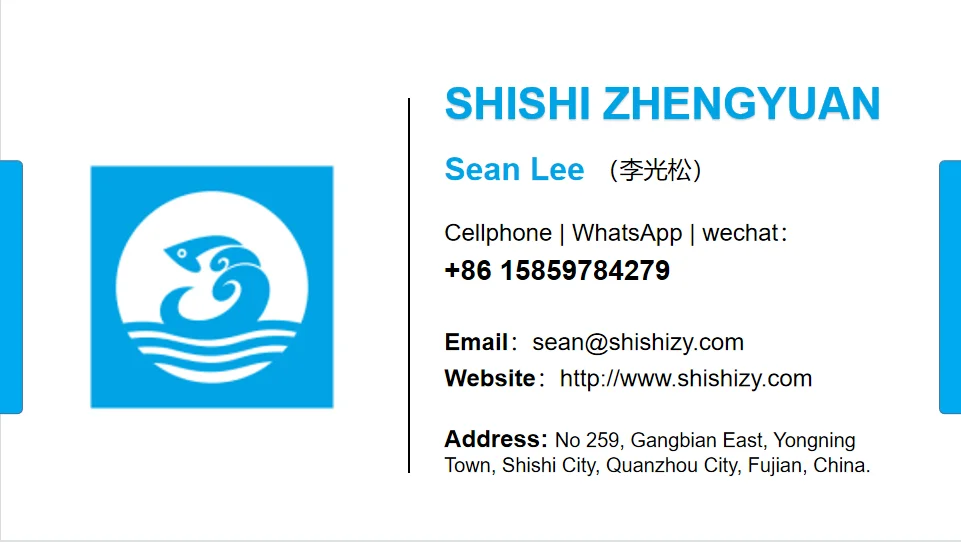 Company Name: | Shishi Zhengyuan Aquatic Product Science & Technology Development Co.,LTD. | ||||