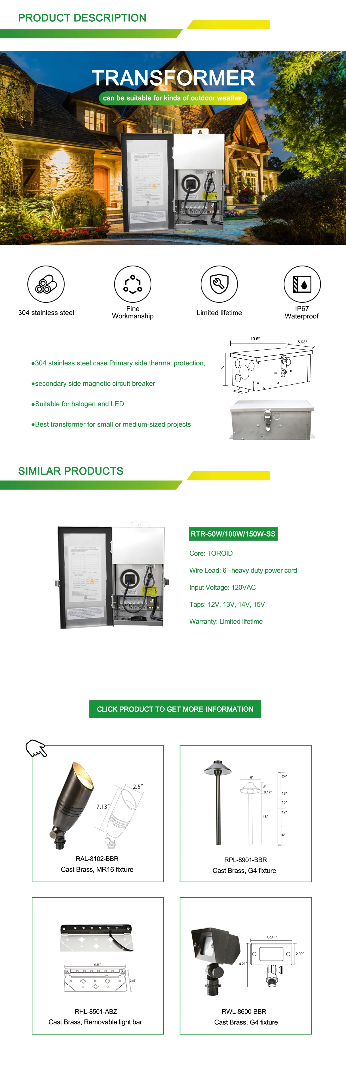 Taps | 12 V, 13 V, 14 V, 15 V | Warranty(Year) | limited lifetime | |
