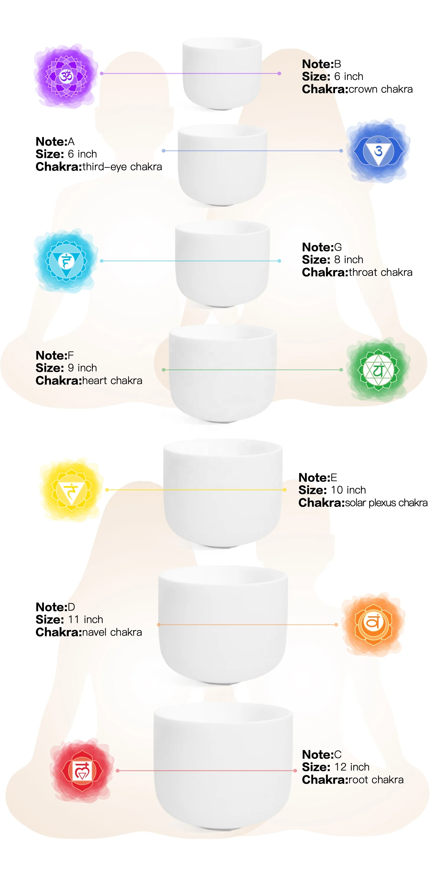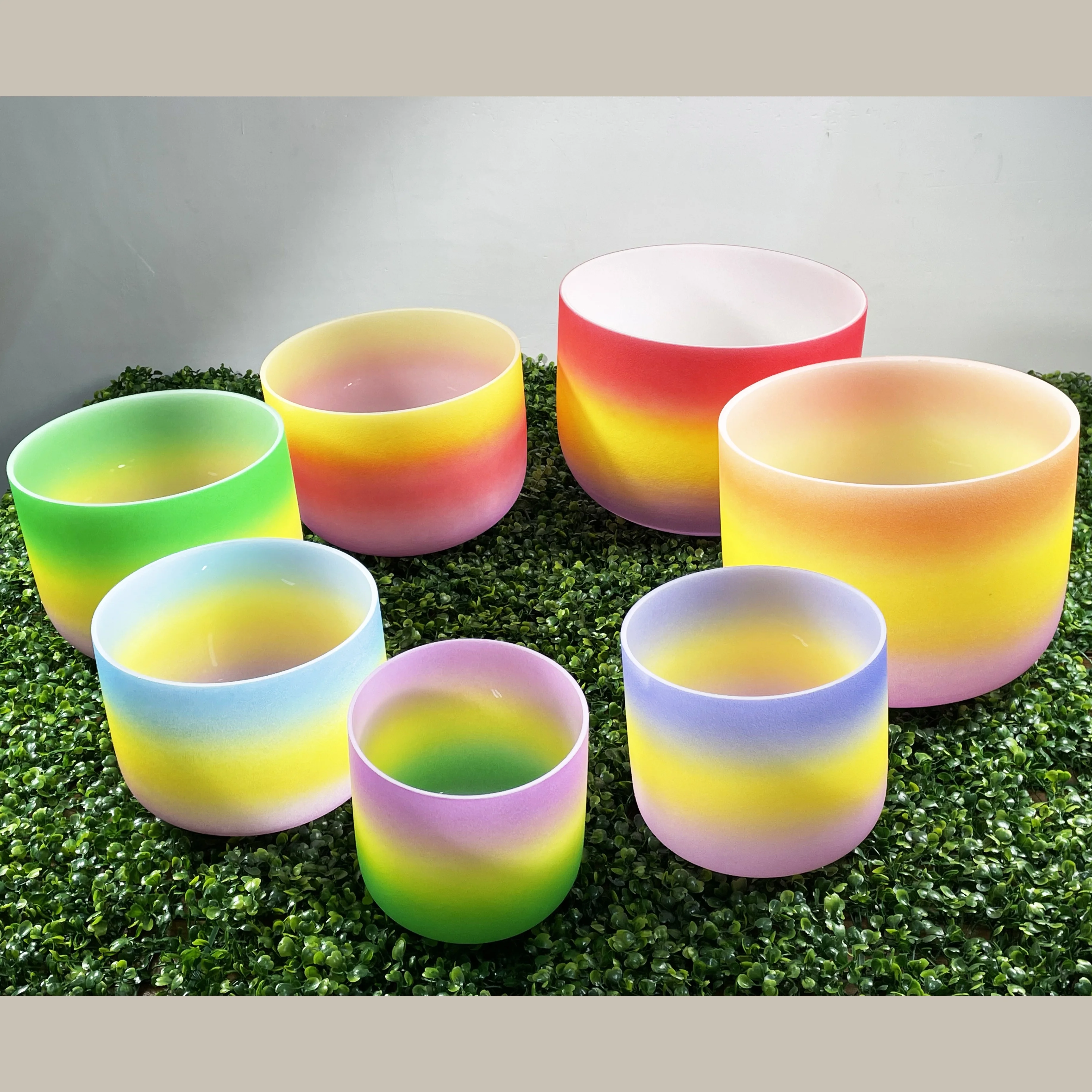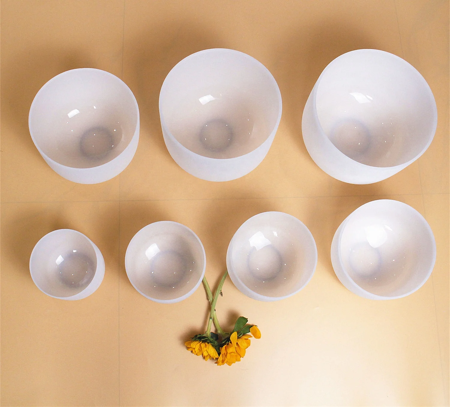 Набор кварцевых чаш для медитации, 7 чакр, Матовый Кварцевый Кристалл