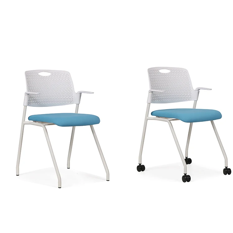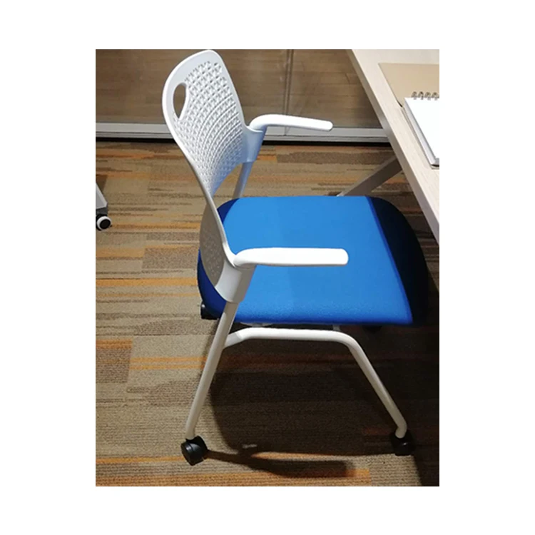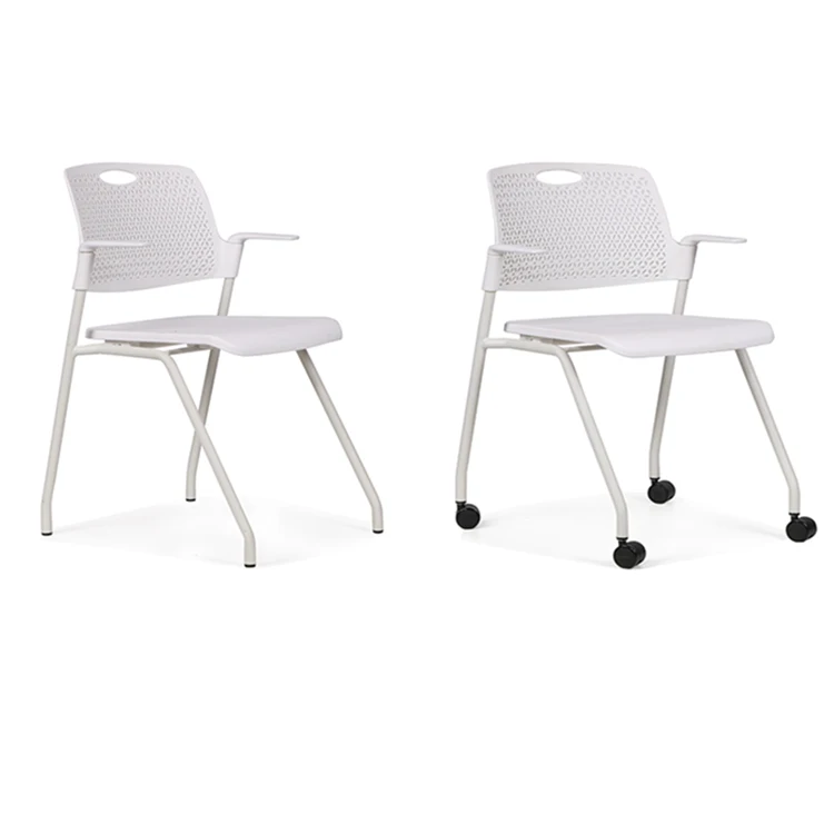 Office furniture conference folding chair white stackable conference arm chair PU wheel conference stackable chair