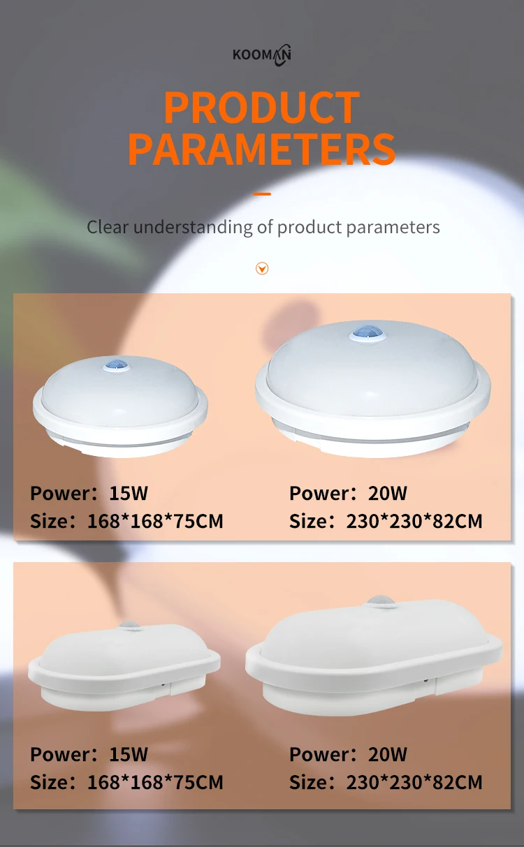 Outdoor Waterproof Led Garden Garage Etc Sensor Wall lamps White 15W Round night sensor light Radar motion sensor light