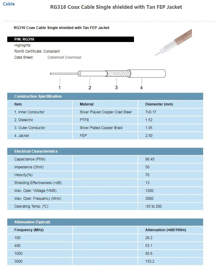 Cable type | RG316 cable | |||