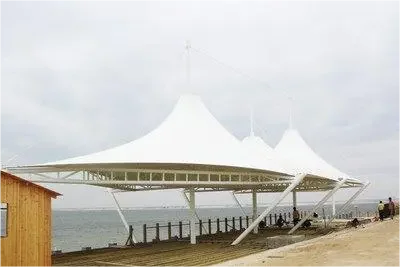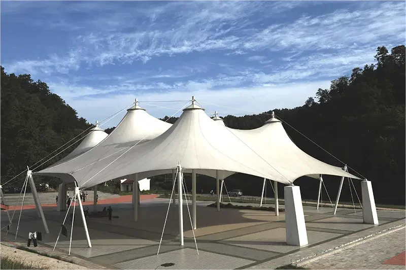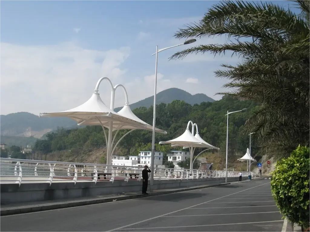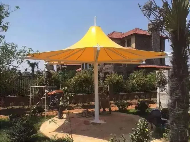 The normal service life is 10-15 years, and it can resist the wind force of 100km/h. It is the choice for villas and landscape shading. We guarantee the quality of each product. The size of the membrane umbrella is determined by the customer's needs, with various shapes and specifications, including quadrilateral, pentagon, hexagon and octagon. We can also produce and process irregular heterosexual structures according to customer needs. Our product fabrics are all of the best quality. PVC material,anti-pollution, anti-ultraviolet radiation, good self-cleaning, various colors, waterproof, fireproof, widely used, no matter outdoor or indoor, can meet your needs.